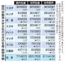 自動車大手8社の10月の世界生産台数が27日、出そろった。トヨタ自動車は前年同月比3・8%増の92万6987台となり、単月として過去最高を更新。インド市場で好調なスズキは6・0%増の30万4917台で2位だった。8社の合計は1・5%減の222万7509台となり、トランプ米政権の関税政策などの影響を受け5社で減少した。