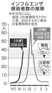岐阜県は27日、県内でインフルエンザの感染者数が急増しているとして、「インフルエンザ警報」を発表した。昨シーズンより4週早く、例年のペースと比べても早い発表となった。...