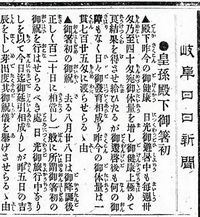 紙齢5万号へ あと9 6000号 1901(明治34)年10月6日 2025年11月28日 05:00 1面トップの見出しは「皇孫殿下御... 残り130文字(全文:147文字) この記事をお読みいただくには「デジタルプラン」または「宅配+デジタルプラン」の会員登録が必要です。無料会員の方はログインしてマイページからコース変更してください。デジタルプランまたは宅配+デジタルプランをご登録中の方はログインしてください。 岐阜新聞デジタル会員に登録すると 無料会員向け記事が読める ニュースレターで最新情報が受け取れる デジタルプラン、宅配+デジタルプランなら Webオリジナルコンテンツが読める 紙面ビューアが読める チケットの先行発売に参加できる お得なクーポンが使える 新規登録ページ ログインページ トップ 岐阜のニュース 紙齢5万号へ あと9 6000号 1901(明治34)年10月6日 関連記事 「お肉博士」と行くバスツアー、養老ミートやパンの名店…岐阜・西濃グルメ旅 12月開催 FC岐阜・北「1年の集大成見せる」あす29日最終節、ホームFC大阪戦【朝刊紙面特集掲載】 ◇バレーボール 大同生命SVリーグ スノーボード 三木「自信を持って挑む」 シーズンへ抱負 バスケットボール W杯アジア1次予選 渡辺雄「強い気持ちで」 日本男子、きょう台湾戦 ゴルフ 砂川が首位発進 カシオOP おすすめ記事 岐阜県で今週末どこ行こう?【11月29、30日】 ソフトピアジャパン周辺、幻想的な光の街 大垣市、企業のイルミネーション始まる 長良川河川敷の公園「平田リバーサイドプラザ」大規模改修へ 海津市、スポーツ区画やドッグラン新設 クマ追い払い、中津川でもドローン活用 岐阜県が効果検証へ