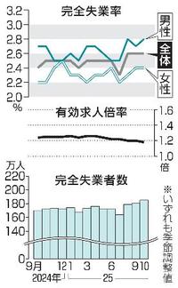 総務省が同日発表した完全失業率(同)は前月と同じ2・6%だった。