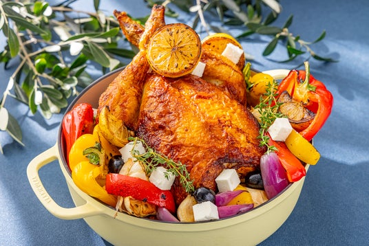 丸ごとの鶏をレモンとガーリックでじっくりマリネし、香ばしく焼き上げました。フェタチーズやオリーブを添えて、ギリシャの風を感じる爽やかな一皿に仕上げています。