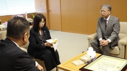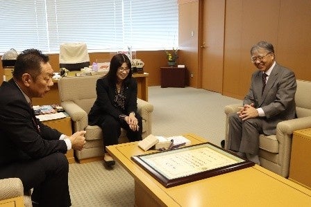 鈴鹿工業高等専門学校(三重県鈴鹿市 校長:藤本 愼司 以下「鈴鹿高専」)の下古谷博司副校長が、元鈴鹿市教育委員としての長年にわたる顕著な功績が認められ、このたび文部科学大臣から地方教育行政功労者表彰を受けました。それを受け、11月4日(火)に末松則子鈴鹿市長を表敬訪問し、市長ならびに廣田教育長に対し、これまでの活動への感謝と受賞の喜びを直接報告しました。末松市長からは、これまでの尽力への感謝の言葉とともに、次世代を担う子供たちの育成に向けた今後のさらなる活躍への温かい期待のお言葉を賜りました。また、廣田教育長からも同様に励ましのお言葉を賜りました。なお、当日は中日新聞の取材を受け、後日11月11日付鈴鹿・亀山版に掲載されました。