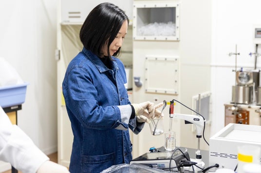 安全性とデザイン性を両立したデニム白衣で分析業務に取り組むスタッフ