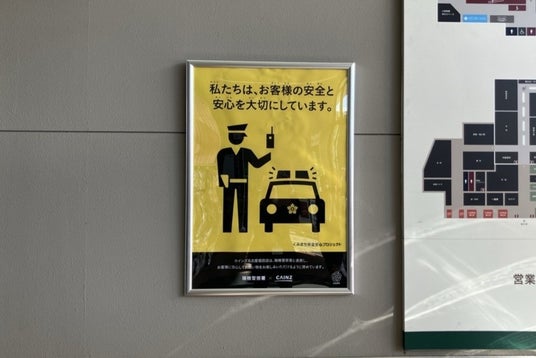 カインズでは、店内の掲示板や館内放送等を活用した啓発活動への協力のほか、従業員が店内での犯罪や犯罪・不審者に関する情報を認知した場合の警察への通報等に積極的に取り組んでいきます。その他の具体的な取り組みについては、今後も各警察署と協議し進めていきます。