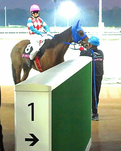第2戦の8Rは宮下瞳騎手が断トツ人気(単勝1.3倍)。先行した塩津騎手と神尾香澄騎手(川崎)が失速。好位から浮上した宮下騎手と小笠原騎手の一騎打ちとなった。最後は4番人気ミキノオーボエ(牝3歳、井上哲厩舎)に騎乗した小笠原騎手が抜け出して1着ゴール。宮下騎手は1馬身差の2着。