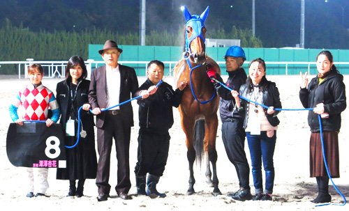 初出場で総合Ⅴを飾った小笠原騎手は「こんな機会で勝つことができてうれしいです。緊張しましたが、他場の先輩騎手との違ったレース展開を見ることができた。1勝ずつ積み重ねていけるよう頑張っていきたい」。