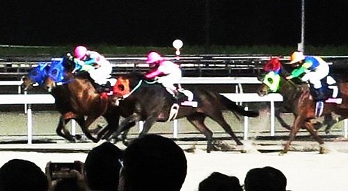 「LJSレディスジョッキーズシリーズ」ザ・ファイナルの名古屋ラウンドはナイター開催。笠松ラウンドではルーキーの小笠原羚騎手(名古屋)が2着、1着で総合トップに立ち、木之前騎手と深沢騎手が4位で並んだ。