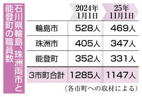 能登被災で職員1割減 3市町、多忙化一因か 2025年12月1日 05:00 能登半島地震や豪雨で大きな被害が... 残り501文字(全文:518文字) この記事をお読みいただくには「デジタルプラン」または「宅配+デジタルプラン」の会員登録が必要です。無料会員の方はログインしてマイページからコース変更してください。デジタルプランまたは宅配+デジタルプランをご登録中の方はログインしてください。 岐阜新聞デジタル会員に登録すると 無料会員向け記事が読める ニュースレターで最新情報が受け取れる デジタルプラン、宅配+デジタルプランなら Webオリジナルコンテンツが読める 紙面ビューアが読める チケットの先行発売に参加できる お得なクーポンが使える 新規登録ページ ログインページ トップ 岐阜のニュース 能登被災で職員1割減 3市町、多忙化一因か 関連記事 バレンタインに贈りたい「南濃みかんチョコ」新作誕生 岐阜・海津市出身のパティシエ考案 ★神戸の吉田監督が退任へ ★東海大が全勝で14度目V ★日大1年の鮫島がアマ横綱 競泳 男子200個メ松下が制す ジャパンOP ★JFL鈴鹿、地域Lへ降格 おすすめ記事 小規模だから強い! 瑞浪市の伝統校は六つの進路別カリキュラム 地域探究にも挑戦 【ぎふ高校研究】 池田温泉、新館のフロアレイアウト案を募集 閉店した企業が明け渡しへ 「国宝」チケット、高山市で長蛇の列 出演俳優に指導した舞踊家・谷口さんの地元、特別上映会 インカレサークルで飛騨地域の課題解決に挑戦 全国8大学の学生が設立