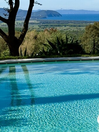 Poggio ai Santiは、この海岸世界の一部です。サン・ヴィンチェンツォの丘の上に位置し、トスカーナの田園風景の美と地中海の光が出会う希少な場所のひとつです。敷地からは、海が広大な銀色の地平線のように広がり、背後にはオリーブの木立や地中海性低木、穏やかな海岸丘陵のリズムが広がります。海風と田園の香りが自然に交わる風景です。