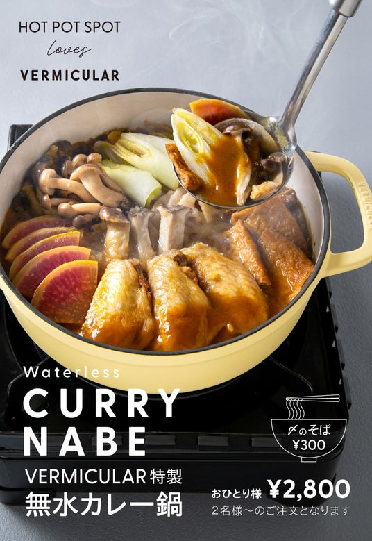 「バーミキュラ」の専属シェフが「TOOTH MART」と共同開発した限定鍋メニューが登場。オーブンポット2だから実現できる無水調理のカレー鍋は、ひとつの鍋で4つの味わいを楽しめる特別仕様。無水調理だからこそ味わえる素材の凝縮された旨みを、段階的に変化する味とともにお楽しみください!