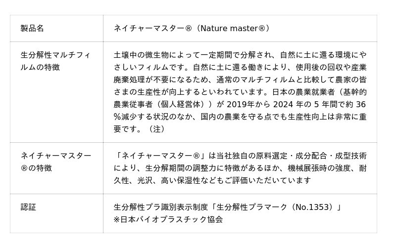 1. 生分解性マルチフォルム「ネイチャーマスター(R)」の製品概要
