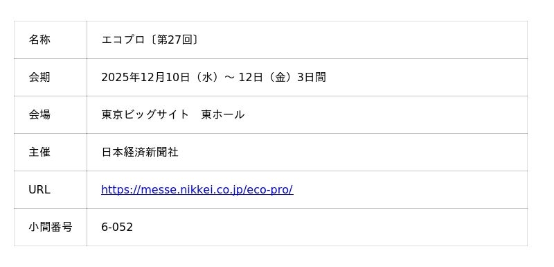 「SDGs Week EXPO」とは、環境総合展「エコプロ」を中核に、「カーボンニュートラルテック」「自然災害対策展」「社会インフラテック」など持続可能で強靭な社会の構築を志す同時開催展示会の総称です。