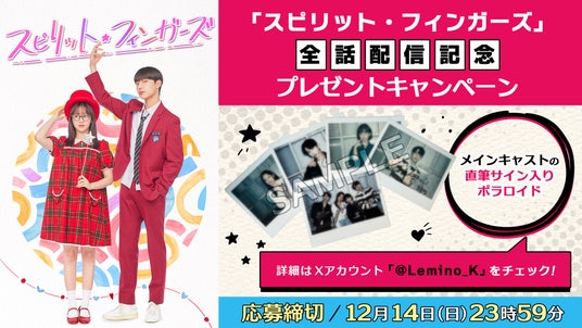 「スピリット・フィンガーズ」全話配信を記念して、Lemino韓流・アジア公式X(@Lemino_K)をフォローし、対象ポストをリポストいただいた方の中から、抽選でメインキャストの直筆サイン入りポラロイドが当たるプレゼントキャンペーンを実施中です。