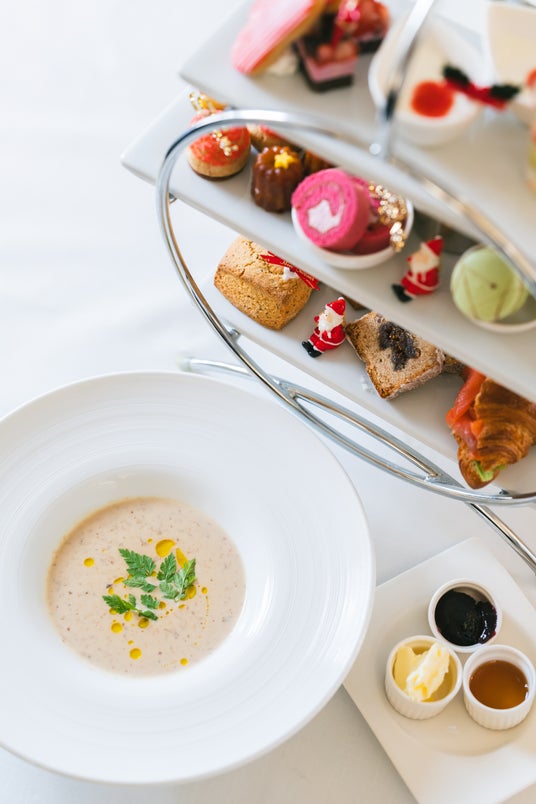 クリスマスの定番であるシュトーレンをはじめ、3種のソースから味わうスコーン、マッシモマリアーニ人気のクロワッサンサンドをご用意。甘味と塩味のバランスが楽しめる、満足感のある段です。