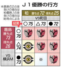 サッカー J1V争い最終節決着 6日、鹿島・勝てば9度目の栄冠 2位柏・逆転へ一戦集中 2025年12月4日 05:00 J1優勝争いは6日の最終節で決着... 残り468文字(全文:485文字) この記事をお読みいただくには「デジタルプラン」または「宅配+デジタルプラン」の会員登録が必要です。無料会員の方はログインしてマイページからコース変更してください。デジタルプランまたは宅配+デジタルプランをご登録中の方はログインしてください。 岐阜新聞デジタル会員に登録すると 無料会員向け記事が読める ニュースレターで最新情報が受け取れる デジタルプラン、宅配+デジタルプランなら Webオリジナルコンテンツが読める 紙面ビューアが読める チケットの先行発売に参加できる お得なクーポンが使える 新規登録ページ ログインページ トップ 岐阜のニュース サッカー J1V争い最終節決着 6日、鹿島・勝てば9度目の栄冠 2位柏・逆転へ一戦集中 関連記事 新鮮野菜、お値打ち価格で販売「軽トラ市」岐阜・可児市で6日 竹林散策もPR ウマの置物や毛織物多彩 岐阜・土岐市で作品展 ★宇都宮がふるさと納税募集 ゴルフ 金谷と吉本♡結婚♡ ゴルフ 金子初の賞金王へ「いいスタートを」 最終戦きょう開幕 ボクシング 堤「恐怖と楽しみ」 強敵ドネアを警戒 17日団体内王座統一戦 おすすめ記事 【名将流儀】センター返しこそ真理 岐阜大会安打数記録チームをどう育てたか 太田郁夫さん【ぎふ高校野球】 全国の「地域映画」を一斉上映へ 岐阜市のロイヤル劇場 各務原市の映画監督・大野さん意気込む 逮捕術の全国大会、岐阜県警特別訓練員チームが2連覇 組織規模別の団体戦 来店客が「振り込み限度額を引き上げて」 詐欺を疑い被害防ぐ 高山市の郵便局長らに感謝状