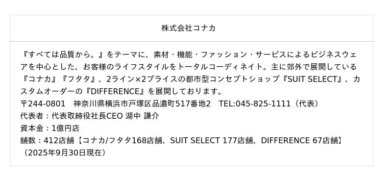 株式会社コナカでは、お客様の利便性と接客サービスの向上により、さらにショッピングを楽しんでいただけるよう今後も取り組んでまいります。