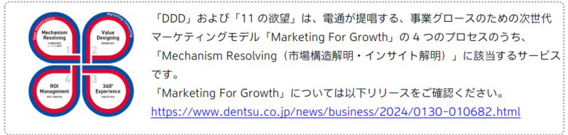 DDDは今後も、人々の消費行動を駆り立てる「欲望」の視点を組み入れた消費者理解を追求し、より深いカスタマージャーニー(顧客の製品・サービスの購入に至るまでの過程)の設計や、PDCAの仕組みづくりなどの支援を通じて、企業のマーケティング活動の高度化・効率化に貢献していきます。