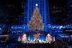 ロックフェラーセンターで開かれた恒例の巨大ツリーの点灯式=3日、ニューヨーク(AP=共同)