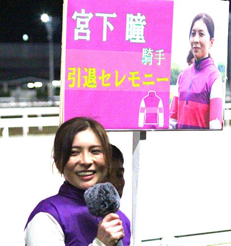 ゴール後には場内をぐるりと1周しラストラン。馬上から何度も頭を下げながら、応援してきたファンらの声援に笑顔で応え、感謝の思いを伝えた。12月1日付で調教師に転身。「宮下瞳厩舎」の一員として厩務員を務める夫と共に強い馬づくりにチャレンジしていく。