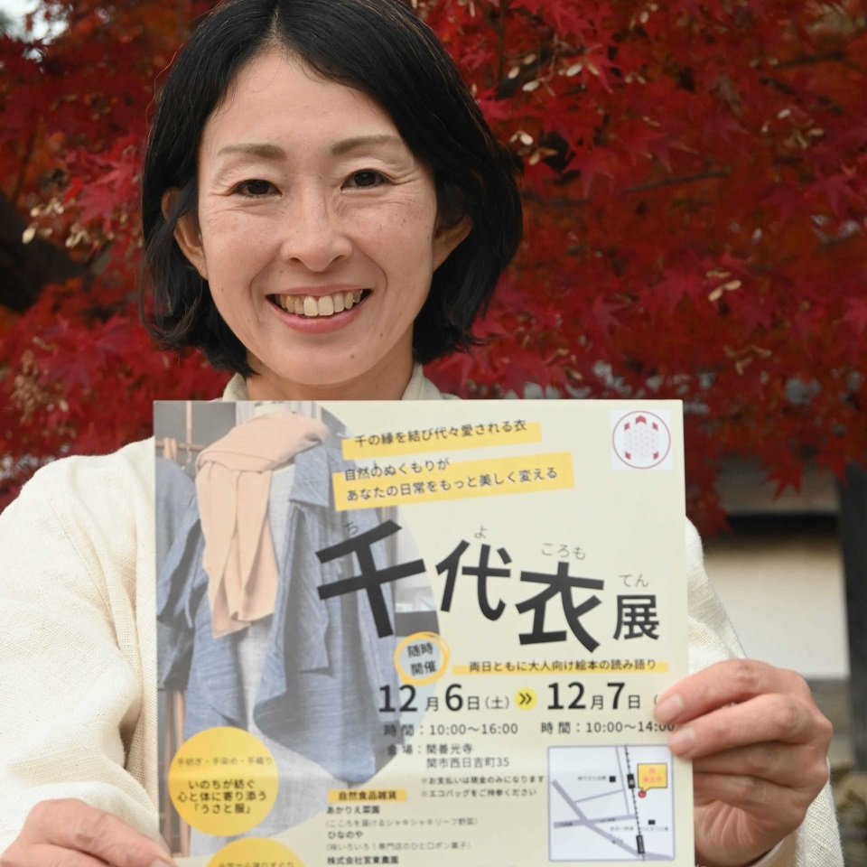 天然素材にこだわった衣服などを販売する「千代衣展」が6、7日、関市西日吉町の関善光寺で開かれる。主催するNPO法人キンダーランド(各務原市)が来場を呼びかけている。