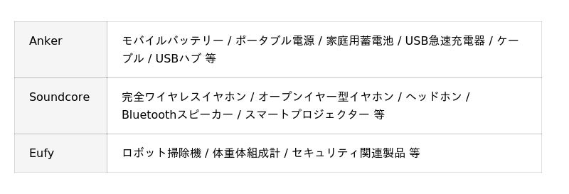 - Anker、SoundcoreおよびEufyは、アンカー・ジャパン株式会社またはその関連会社の商標または登録商標です。