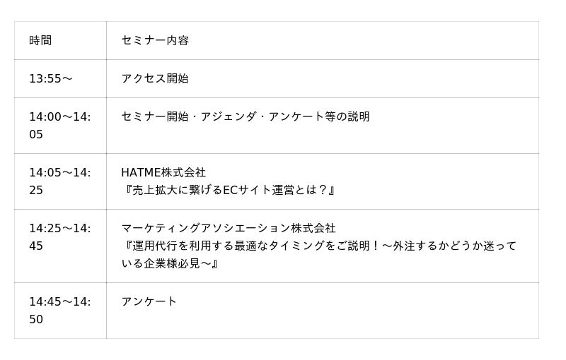 マーケティングアソシエーション株式会社の子会社であるHATME株式会社(本社:東京都台東区 代表取締役:中園広和、以下当社)は2025年12月19日(木)に、ウェブセミナー「【EC事業者必見】売上最大化のための改善施策&運用代行の成功法則」を、開催いたします。