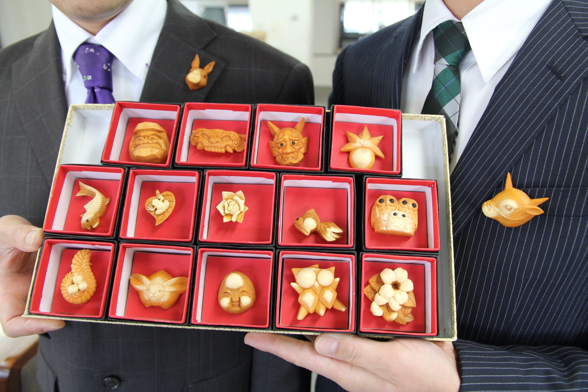 「飛騨匠」の技を代表する国指定の伝統的工芸品「一位一刀彫」の魅力と技術力をPRするため、市では一位一刀彫バッチを作成し、市長をはじめ市役所の管理職が着用して、一位一刀彫のすばらしさや特徴を広くPRしています。