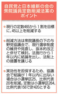 議員定数削減法案を提出 自維、1割の「45」以上 2025年12月6日 05:00 自民党と日本維新の会は5日、衆院... 残り892文字(全文:909文字) この記事をお読みいただくには「デジタルプラン」または「宅配+デジタルプラン」の会員登録が必要です。無料会員の方はログインしてマイページからコース変更してください。デジタルプランまたは宅配+デジタルプランをご登録中の方はログインしてください。 岐阜新聞デジタル会員に登録すると 無料会員向け記事が読める ニュースレターで最新情報が受け取れる デジタルプラン、宅配+デジタルプランなら Webオリジナルコンテンツが読める 紙面ビューアが読める チケットの先行発売に参加できる お得なクーポンが使える 新規登録ページ ログインページ トップ 岐阜のニュース 議員定数削減法案を提出 自維、1割の「45」以上 関連記事 大垣市ホームページでAI活用 生活情報を集約して回答、26日まで試行利用 FC岐阜、不老GKコーチと津田コーチが退任 花もち、華やかな新年願う 岐阜・飛騨地方の正月飾り、制作最盛期 スノーボード 村瀬心、決勝へ W杯ビッグエア スキー・ジャンプ W杯女子 丸山4位 今季初めて表彰台逃す ◇バスケットボール りそなBリーグ1部 おすすめ記事 シンプルな美を屛風に 「べらぼう」劇中画制作の日本画家・向井大祐さん、岐阜県美術館で公開制作 岐阜市のハム・ソーセージ専門店、全国コンテスト最高位 出品4商品全て金メダル 教育実践、大きな実り 岐阜県優秀校4校表彰式 花もち、華やかな新年願う 岐阜・飛騨地方の正月飾り、制作最盛期