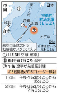 中国軍機、レーダー照射 沖縄近海 空自機に2回 高市首相「強く抗議」 2025年12月8日 05:00 中国軍のJ15戦闘機=6月(防衛省提供) 防衛省は7日、沖縄本島南東の公海... 残り840文字(全文:857文字) この記事をお読みいただくには「デジタルプラン」または「宅配+デジタルプラン」の会員登録が必要です。無料会員の方はログインしてマイページからコース変更してください。デジタルプランまたは宅配+デジタルプランをご登録中の方はログインしてください。 岐阜新聞デジタル会員に登録すると 無料会員向け記事が読める ニュースレターで最新情報が受け取れる デジタルプラン、宅配+デジタルプランなら Webオリジナルコンテンツが読める 紙面ビューアが読める チケットの先行発売に参加できる お得なクーポンが使える 新規登録ページ ログインページ トップ 岐阜のニュース 中国軍機、レーダー照射 沖縄近海 空自機に2回 高市首相「強く抗議」 関連記事 ★川崎ブローダーセン獲得へ 大迫マラソン日本新 2時間4分55秒、記録1秒更新 ◇フットサル メットライフ生命Fリーグ サッカー W杯日本初戦、6月15日 チュニジア戦は21日 上田4発 オランダ1部L ★INAC神戸など準決勝へ おすすめ記事 飛騨の進学校は「真摯な挑戦」を積み重ねる 伝統+探究+DX&AIで時代を切り拓く!【ぎふ高校研究】 参政党岐阜県連、次期衆院選の公認候補が会見 岐阜3区と4区 3万個の光、冬の思い出に 可児市のアーラでイルミネーション 路線バス運転手、1日2時間勤務でもOK 岐阜バスが短時間契約の募集開始