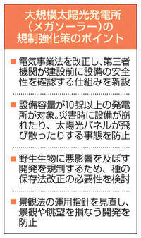 メガソーラー規制強化へ 来年にも法改正 事業者 厳格監視 開発による環境影響抑制 2025年12月9日 05:00 政府が年内にも取りまとめる大規模... 残り574文字(全文:591文字) この記事をお読みいただくには「デジタルプラン」または「宅配+デジタルプラン」の会員登録が必要です。無料会員の方はログインしてマイページからコース変更してください。デジタルプランまたは宅配+デジタルプランをご登録中の方はログインしてください。 岐阜新聞デジタル会員に登録すると 無料会員向け記事が読める ニュースレターで最新情報が受け取れる デジタルプラン、宅配+デジタルプランなら Webオリジナルコンテンツが読める 紙面ビューアが読める チケットの先行発売に参加できる お得なクーポンが使える 新規登録ページ ログインページ トップ 岐阜のニュース メガソーラー規制強化へ 来年にも法改正 事業者 厳格監視 開発による環境影響抑制 関連記事 米粉マフィンとシフォンケーキ&地元野菜サラダ、ゆったりできるカフェ 岐阜・垂井町 パスやシュートの精度高めるには?大垣工高サッカー部が研究 実験用に的を溶接、サンプル採取 ブロッコリー色濃く質高く 岐阜・大垣市で収穫本格化 五輪フィギュアスケート 日本、団体で出場権 サッカー 広島競り勝つ ACLE1次L サッカー 日本、イングランドと対戦 来年4月、W杯へ強化試合 おすすめ記事 【名将流儀】空想で野球は勝てん! 相手を見抜くピッチャーの育て方 太田郁夫さん【ぎふ高校野球】 客引き案内先「損しかない悪質店舗」謎の手数料/メニュー半分品切れ 岐阜市玉宮 客引きの学生、岐阜市玉宮で後絶たず対策強化 若者「みんなの幸せのため」悪びれず 米粉マフィンとシフォンケーキ&地元野菜サラダ、ゆったりできるカフェ 岐阜・垂井町
