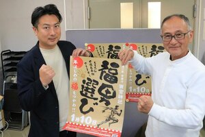 「福男選び」来年1月もやります 中津川の西宮神社、参拝一番乗りへの参加呼び掛け 社会 2025年12月10日 18:17 福男選びへの参加を呼びかける(左から)実行委員会の武川治宏さんと西宮神社宮司の馬島伸治さん=中津川市役所 今年1月に初めて開かれ話題を呼ん... 残り529文字(全文:546文字) この記事をお読みいただくには「デジタルプラン」または「宅配+デジタルプラン」の会員登録が必要です。無料会員の方はログインしてマイページからコース変更してください。デジタルプランまたは宅配+デジタルプランをご登録中の方はログインしてください。 岐阜新聞デジタル会員に登録すると 無料会員向け記事が読める ニュースレターで最新情報が受け取れる デジタルプラン、宅配+デジタルプランなら Webオリジナルコンテンツが読める 紙面ビューアが読める チケットの先行発売に参加できる お得なクーポンが使える 新規登録ページ ログインページ トップ 岐阜のニュース 社会 「福男選び」来年1月もやります 中津川の西宮神社、参拝一番乗りへの参加呼び掛け 関連記事 「福女チャレンジ」幸運つかめ!岐阜・恵那市の市神神社で初企画 俊足じゃない人にも好機あり 11代苗木藩主遠山友寿、奥方お由賀“再現” 初の「遠山行列」華やか 来年築城500年 中津川市で六斎市 ポケモンユナイト「メンバー同士の協調」勝利の鍵 岐阜県で大会、中津商高チーム準V LRT構想「いくらでできる?」 筆者がズバリ断言【みのひだ乗り物探訪 第106回】 定期テストも提出課題も全廃! なのに成績は上がった!? 東濃の伝統校の新たな挑戦とは 【ぎふ高校研究 中津】 一番福「福を分け与える存在に僕はなる」 岐阜・中津川市で福男選び、東海地区初開催 おすすめ記事 LRT構想「いくらでできる?」 筆者がズバリ断言【みのひだ乗り物探訪 第106回】 ドラゴンズ根尾投手、高山署で一日署長 「事故や犯罪、ゼロに」 FC岐阜、石丸監督と契約更新 ヘッドコーチには元監督の上野氏 「福男選び」来年1月もやります 中津川の西宮神社、参拝一番乗りへの参加呼び掛け