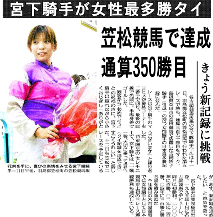 ■笠松では通算100勝、吉岡牧子騎手の最多勝記録350勝にも並んだ