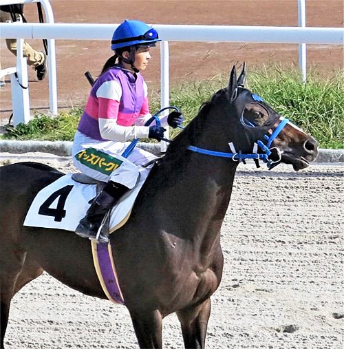 装鞍所エリアに戻ってくると、西日を浴びたゴーグル姿が輝いており、華麗で頼もしかった。「かっこいいママさんジョッキー」で、1週前にはポルダディソーニで名古屋重賞・梅見月杯を勝ったばかり。「笠松で3連勝ですね。名古屋の重賞も勝ったし、最近絶好調だね」と声を掛けてみると、「いやー、昨年は笠松であんまり勝ってないですから、頑張ります」と笑顔キラキラ。笠松での印象的なシーンとなった。