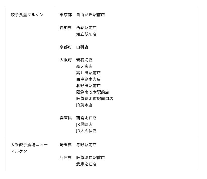 「焼餃子スクラッチくじ」対象店舗