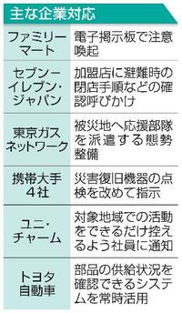 北海道・三陸沖後発地震注意情報の発表を受け、企業が顧客への注意喚起やオンライン会議の推進などの対応を進めている。警戒しながら日常の業務を継続。万一の際にも生産や供給が滞らないよう、防災対策も強化する。