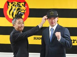 阪神移籍の浜田「2桁打ちたい」 ヤクルトから現役ドラフトで 2025年12月13日 05:00 現役ドラフトでヤクルトから阪神に移籍し、帽子をかぶせてもらう浜田(右)=12日、兵庫県西宮市 現役ドラフトでヤクルトから阪神に移籍した浜田が12日、兵庫県西宮市で記者会見し「誰と勝負するというよりは、自分が打つんだという気持ちでやっていきたい。まずは2桁(本塁打)打ちたい」と意気込んだ。背番号は32。 大分・明豊高から2019年にドラフト4位でヤクルト入団。今季は34試合で打率2割2分1厘にとどまった。外野の定位置奪取に向け「振ることは全力ながらも、確実性を上げていきたい」と成長を誓った。 トップ 全国のニュース 阪神移籍の浜田「2桁打ちたい」 関連記事 札幌の住宅で女性2遺体、事件か 日本大使館が邦人の釈放を確認 高木美帆、1000mも五輪確実 アイヒャーが今季初勝利 ジャンプ丸山希2位、プレブツV 高原宜希は29位 おすすめ記事 3期目か刷新か、岐阜市長選新年決戦へ 柴橋氏と大須賀氏が出馬会見 「駿河屋」が岐阜市のマーサ21に開店 ガンプラやアニメ雑貨など30万点以上 聞き流す岐阜のニュース(~12月12日)岐阜県内の商業施設店舗面積ランキング/岐阜県警、ユニークな採用動画/冬眠明けのクマ捕獲へ/「福男選び」中津川で再び 岐阜市にサウナ特化型店舗、12月15日オープン フィットイージーが1号店