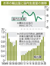 日本のお茶の輸出量が2025年1〜10月の累計で1万84トンに急増し、1954年以来、71年ぶりに年間1万トンを超えることが13日、農林水産省などの統計や業界団体の資料で分かった。健康志向の高まりを背景とする海外での抹茶ブームや円安が追い風となった。半面、国内では生産量減少もあって品薄になっており、最も一般的な煎茶やペットボトル飲料の価格が上昇している。