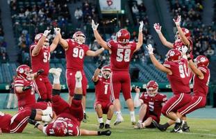 立命大は最初の攻撃シリーズでQB竹田がWR仙石へ先制TDパスを決め、さらに竹田がTDランと主導権を握った。21―14で折り返した後半はRB蓑部らのラン主体に攻めてリードを広げ、完敗したリーグ戦の雪辱を果たした。2年ぶりの頂点を狙った関学大は後半は無得点と低調だった。