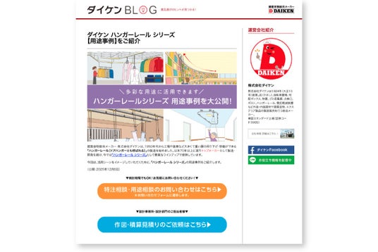 ・ダイケンBLOG 内「ダイケン ハンガーレール シリーズ【用途事例・導入事例】をご紹介」内バナーよりアクセス