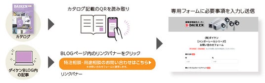 ブログページで用途事例をご紹介。特注相談フォームへのリンクバナーも設定。