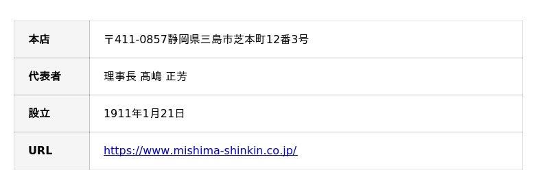 三島信用金庫は、「共存同栄」を経営理念に掲げ、静岡県東部・伊豆半島を中心に地域密着の金融サービスを提供しています。お客さまの多様なニーズに寄り添い、中小企業の成長支援や個人の暮らしを支える取り組みを進めています。地域社会とのつながりを重視し、経済発展と豊かな暮らしの実現に貢献しています。