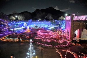 岐阜市内の高校生らが企画運営するイルミネーションのイベントが15日夜、同市長良の長良公園の沈床花園周辺で始まり、訪れた人を楽しませている。25日まで。