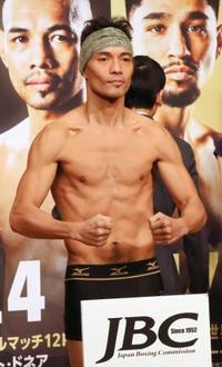 堤と暫定王者のノニト・ドネア(フィリピン)はともにリミットより100グラム軽い53・4キロ。堤は計量後、ドネアの体をまじまじと見つめ「手が長いので警戒する距離が増える。一発もある相手で疲れる試合になるが、やるべき仕事を淡々とこなすだけ」と語った。