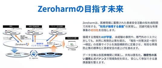 この度、同院のインシデントレポートシステムの商用化が決定し、2026年にゼロハーム社から発売(※4)されることになりました。商用化によって、これまで名大病院で開発、運用を行ってきたインシデントレポートシステムを他病院で利用出来ることはもちろん、名大病院で蓄積してきた12万件のデータを元にAIを利用した病院の安全性の測定に繋がるモデルを他病院でも使用することが可能となります。これは全国での医療事故防止、患者の安全確保に対して大きな貢献が期待されます。