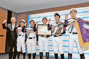 クラブは創立5年目で、1年生は県内に住む17人が所属。市役所には市内の5人が訪問し、横山新主将(桜丘中)は「小学6年生の県大会は何度も負けて悔しい思いをした。勝ててとてもうれしかった」と大会を振り返った。浅野市長は「練習に練習を重ねて、チーム一丸となった成果が出た」とたたえた。