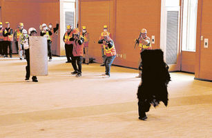 訓練には市職員や市猟友会員、下呂署員など約50人が参加。ツキノワグマの成獣が同会館に侵入したという想定で行われた。