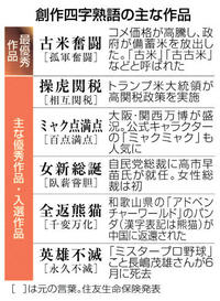 コメ高騰対策「古米奮闘」 住友生命 今年の創作四字熟語発表 2025年12月18日 05:00 「創作四字熟語」の最優秀作品に選ばれた「古米奮闘」=17日午後、大阪市中央区 住友生命保険は17日、2025年... 残り530文字(全文:547文字) この記事をお読みいただくには「デジタルプラン」または「宅配+デジタルプラン」の会員登録が必要です。無料会員の方はログインしてマイページからコース変更してください。デジタルプランまたは宅配+デジタルプランをご登録中の方はログインしてください。 岐阜新聞デジタル会員に登録すると 無料会員向け記事が読める ニュースレターで最新情報が受け取れる デジタルプラン、宅配+デジタルプランなら Webオリジナルコンテンツが読める 紙面ビューアが読める チケットの先行発売に参加できる お得なクーポンが使える 新規登録ページ ログインページ トップ 岐阜のニュース コメ高騰対策「古米奮闘」 住友生命 今年の創作四字熟語発表 関連記事 モーニング、キャラメリゼのフレンチトースト人気 岐阜・瑞浪市のカフェ 「正月菜」収穫ピーク 岐阜県内の生産量9割占める神戸町 FC岐阜・西谷がJ3優秀選手賞に選出 今季8得点 【FC岐阜2025 苦闘の1年(中)】クラブ記録更新の7連勝 新体制、意識改革で浮上 労働遺産に「野麦峠工女」内定、高山の兄妹像やまつりも認定 労働ペンクラブ カーリング 混合複五輪最終予選 小穴・青木組連勝 1次L 5勝2敗で終える おすすめ記事 美濃加茂市の新庁舎整備地、条例改正案は薄氷の可決【各議員の採決の結果一覧掲載】 岐阜城で信長期の3段目の石垣発見 岐阜市の発掘調査、櫓や塀など造成か 本巣市に11階建てホテル建設へ 東海環状道西回り開通で需要見込む 岐阜市の自動運転バス、新車両の一般乗車スタートへ 来年1月下旬から