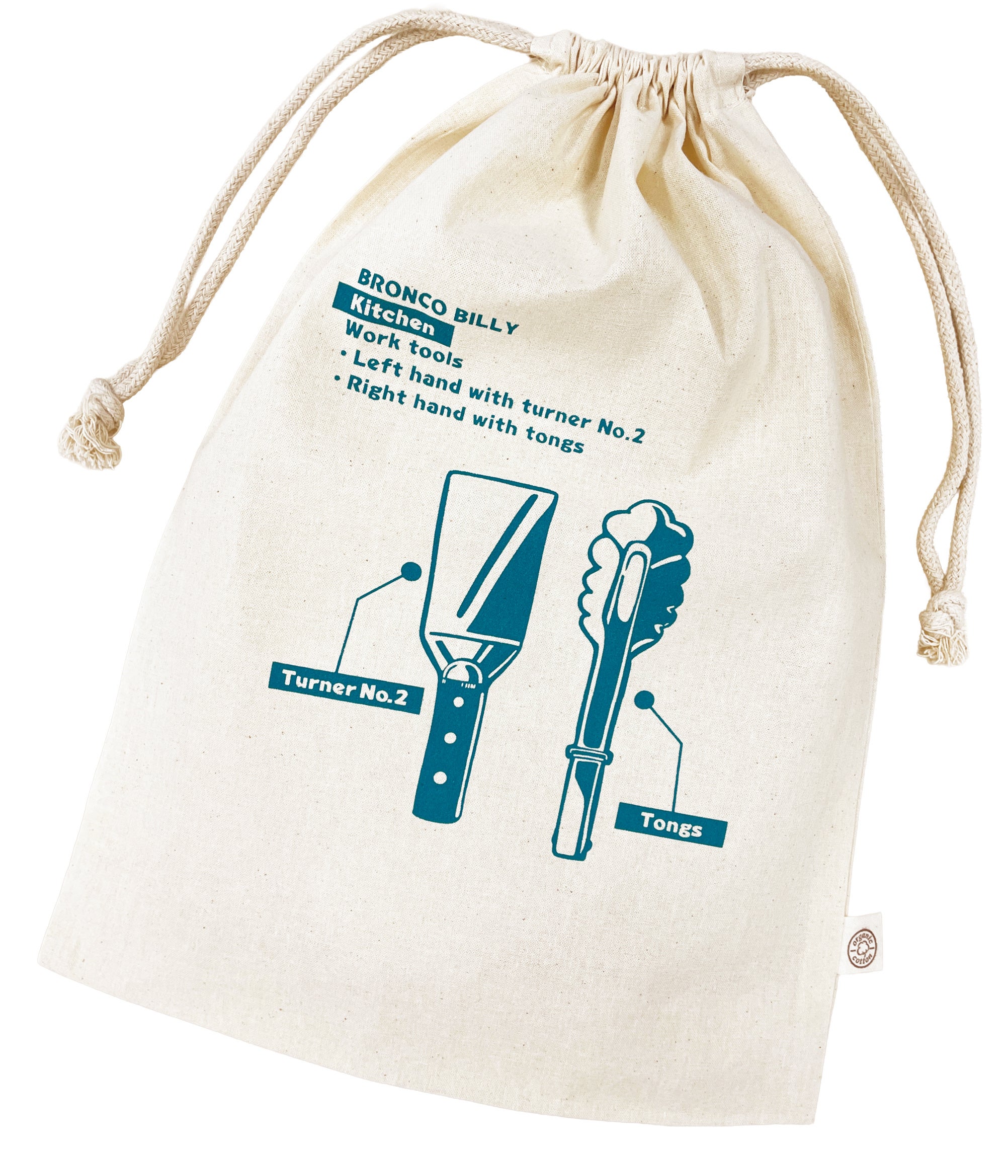 また、2025年はブロンコビリー全店で140店舗突破を記念して、古賀店でしか手に入らないオリジナルデザイン巾着をプレゼントいたします。ブロンコビリーのキッチンで使用しているトングとターナーをモチーフにしたポップなデザインで、大容量の巾着ですので普段使いにおすすめで、先着1,000名様限定です。