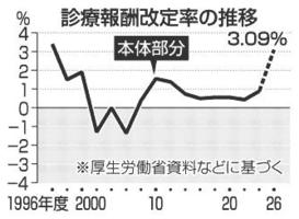 診療報酬本体3.09%上げ 政府方針 経営支援と賃上げへ 2025年12月20日 05:00 政府は19日、2026年度の診療... 残り693文字(全文:710文字) この記事をお読みいただくには「デジタルプラン」または「宅配+デジタルプラン」の会員登録が必要です。無料会員の方はログインしてマイページからコース変更してください。デジタルプランまたは宅配+デジタルプランをご登録中の方はログインしてください。 岐阜新聞デジタル会員に登録すると 無料会員向け記事が読める ニュースレターで最新情報が受け取れる デジタルプラン、宅配+デジタルプランなら Webオリジナルコンテンツが読める 紙面ビューアが読める チケットの先行発売に参加できる お得なクーポンが使える 新規登録ページ ログインページ トップ 岐阜のニュース 診療報酬本体3.09%上げ 政府方針 経営支援と賃上げへ 関連記事 クマに襲われ?猟友会男性死亡 宮城の山林 ケアマネ復職 尻込み 低賃金■有料の法定研修 「やる気だけじゃ困難」 1.17追悼行事 大幅減見通し 兵庫県内、資金難で 揺るがぬ影響力 踏切で特急と接触、車炎上 京都、1人死亡 ご尊顔ぴかぴか 岐阜大仏すす払い おすすめ記事 「長良川の鮎」世界農業遺産認定10年…清流の宝つなぐ 飛騨センター運営期間を延長 岐阜県「当面27年3月末まで」 岐阜・土岐市の老舗旅館、105年の歴史に幕 3月末で閉館 岐阜#いぬ図鑑、ワンダフル 「美少女図鑑」チームが22日に発行
