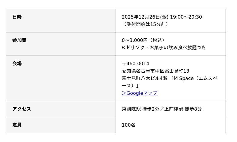 ※会場は、アルコワーキングではないのでご注意ください。東別院駅 徒歩2分にある「M Space(八木ビル内)」です。
